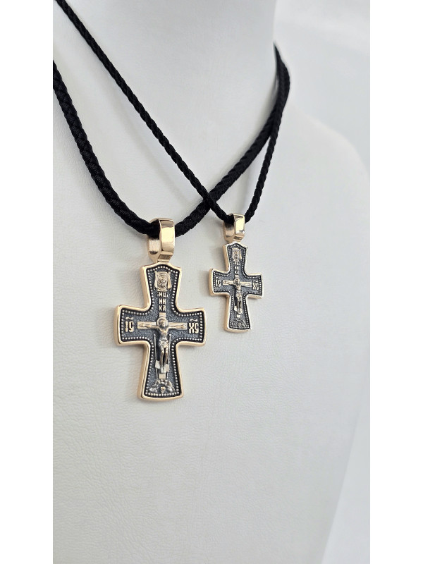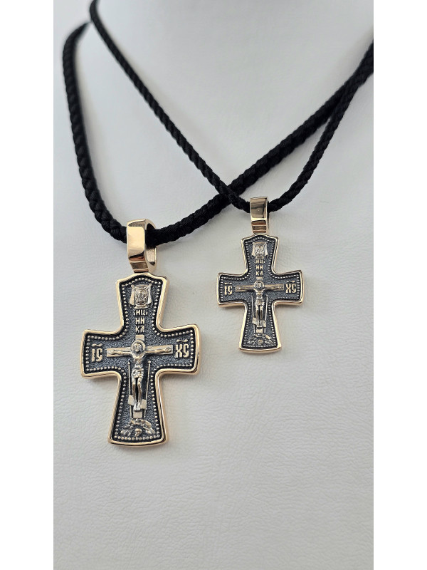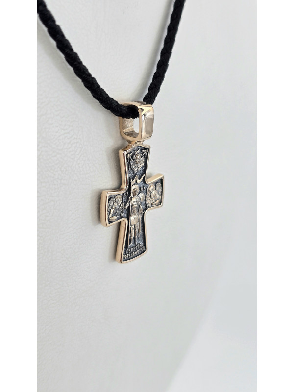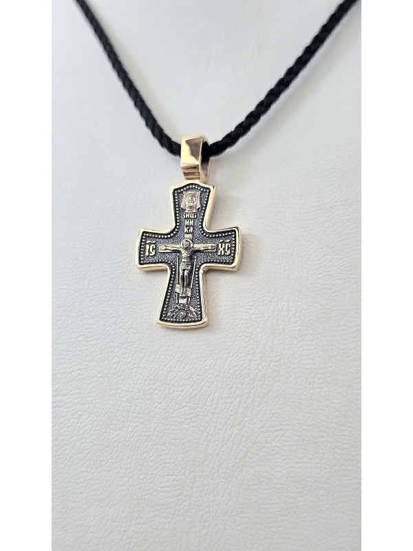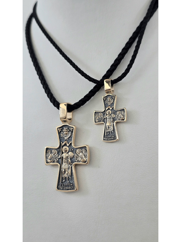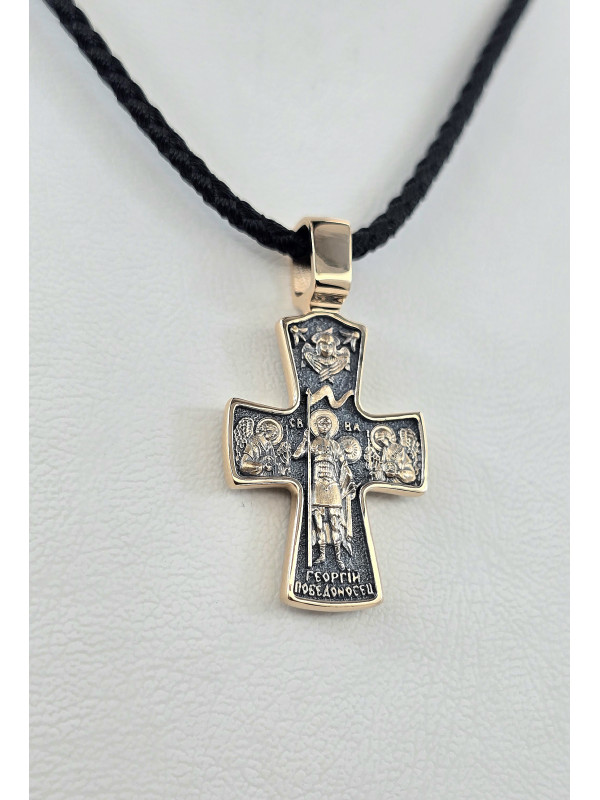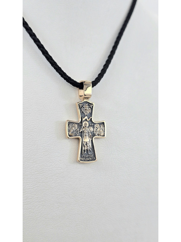 Крест из красного золота 585°с элементами чернения артикул зк 1113 " Георгий Победоносец " мужчине женщине Купить оптом и в розницу