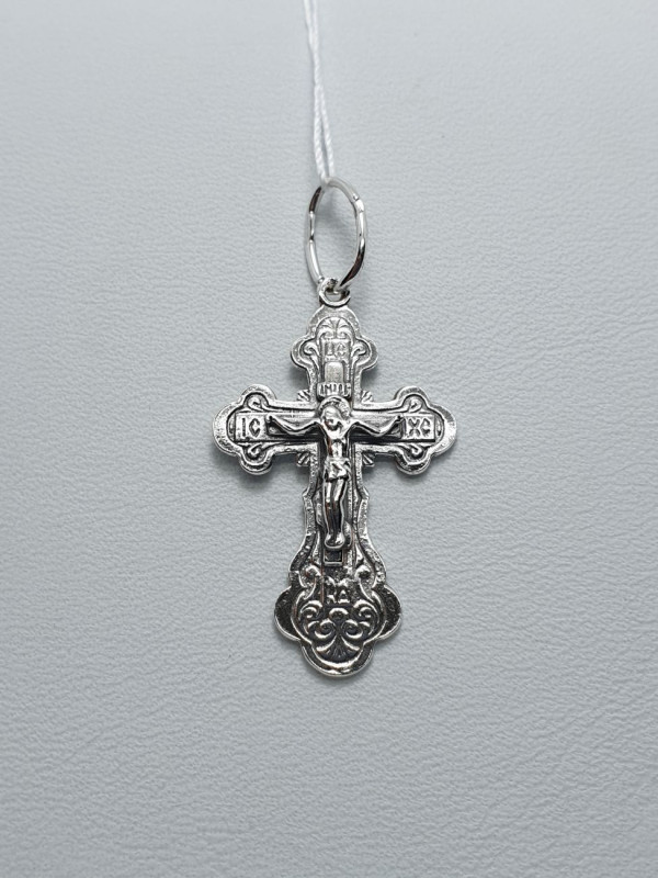 Крестик классический "Спаси и сохрани", серебро с чернением