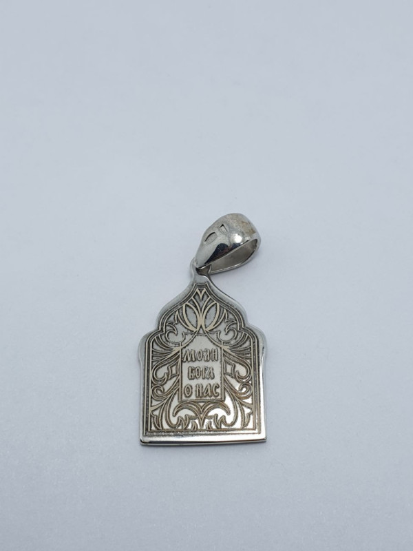 Ладанка двухсторонняя, с молитвой, с изображением Георгия Победоносца. Покрытие - родий с эмалью