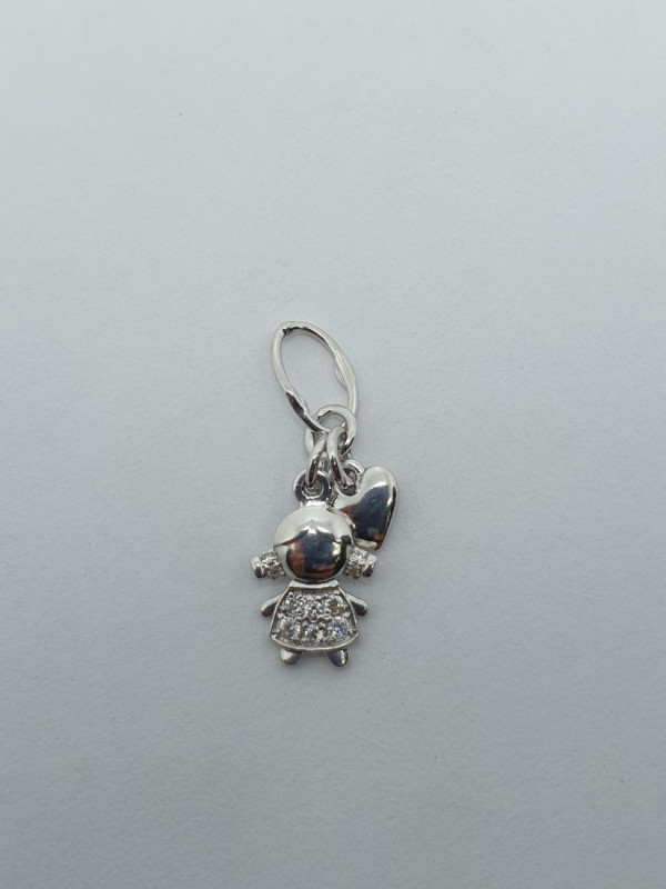 Подвеска в виде девочки с сердечком, вставки из камней. Покрытие - родий белый.