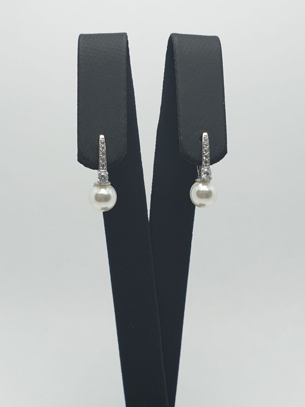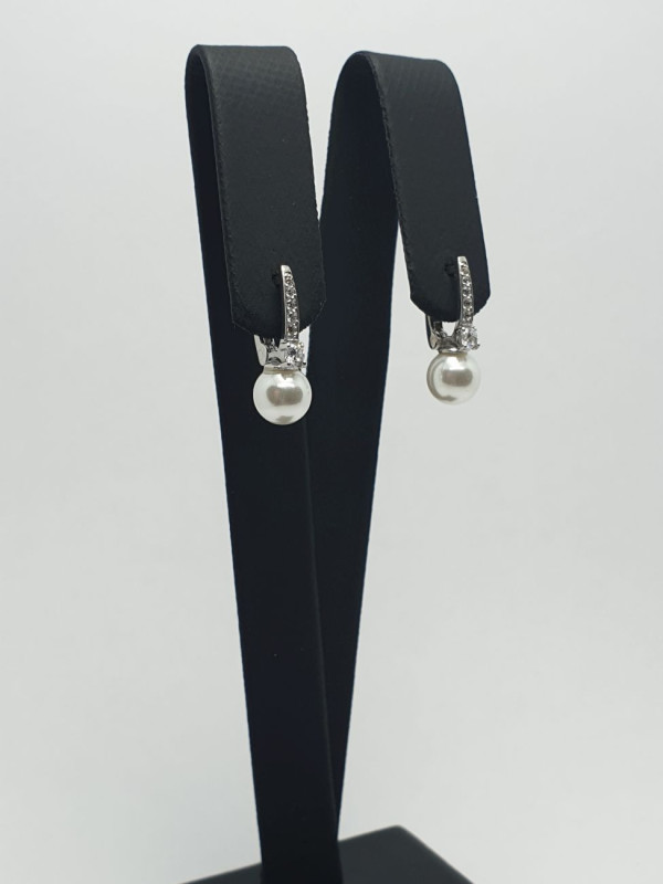 Серьги женские украшены кубическим цирконием и жемчугом, на английской застежке. Покрыты родием