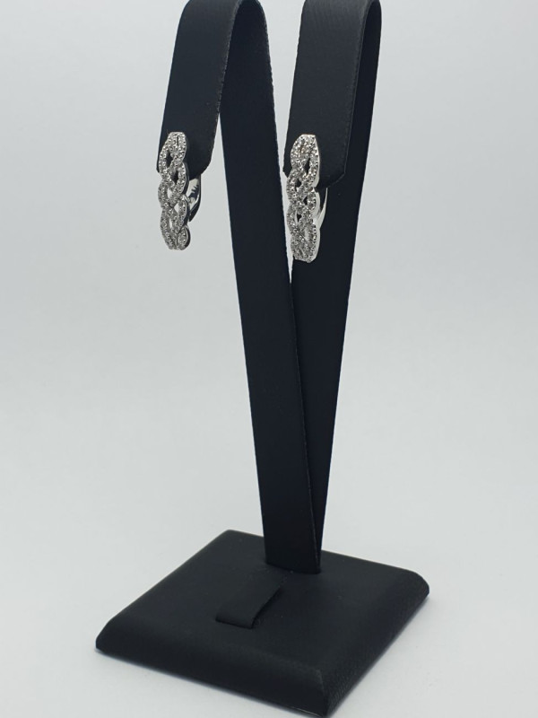 Серьги женские украшены кубическим цирконием, на английской застежке. Покрыты родием