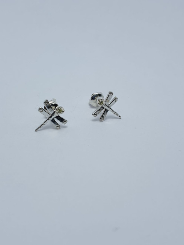 Серьги женские гвоздики в виде стрекозы. Застежка на закрутке. Без покрытия