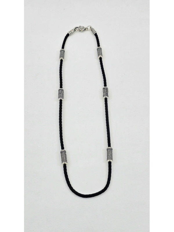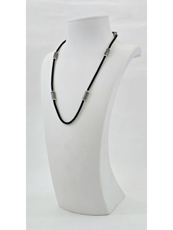 Шнур - Колье с серебряными вставками Арт. 471.59 ч " Николай Чудотворец " мужской женский Купить оптом и в розницу