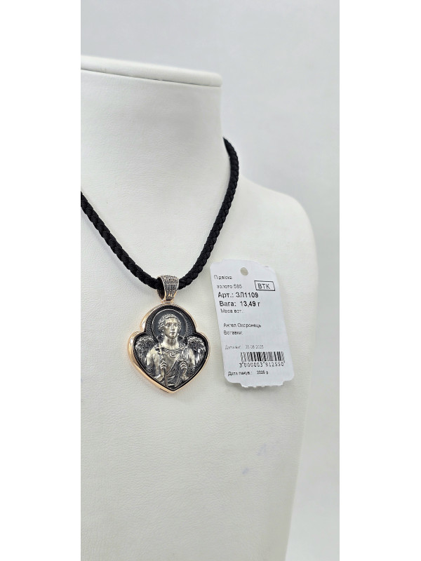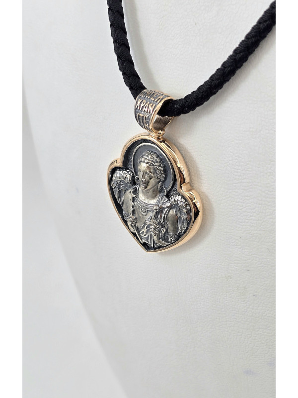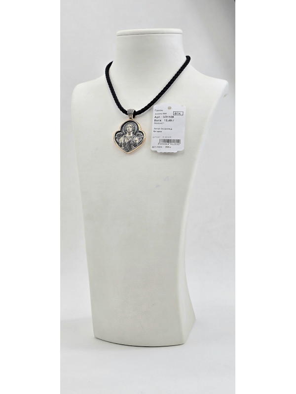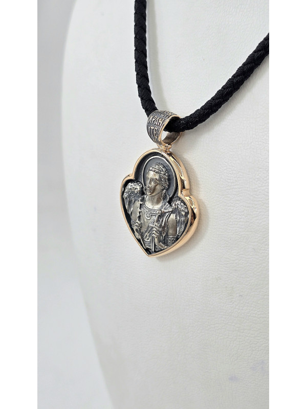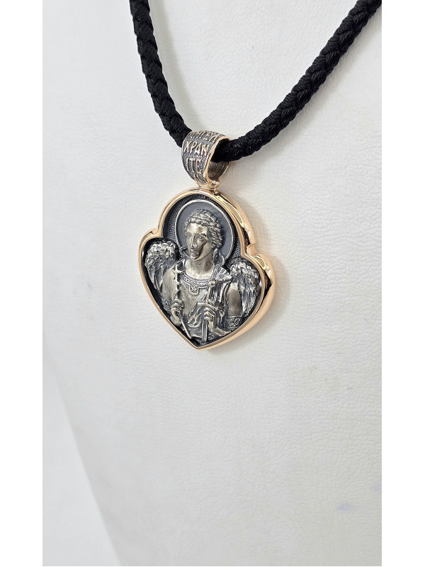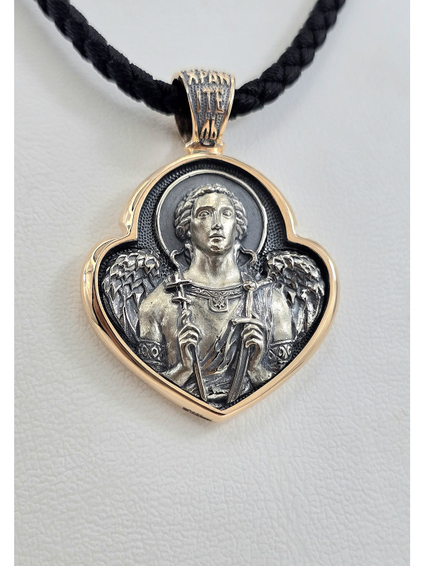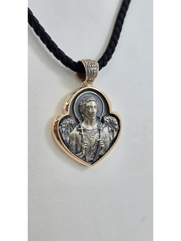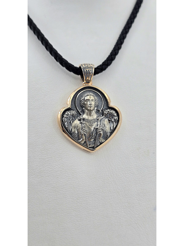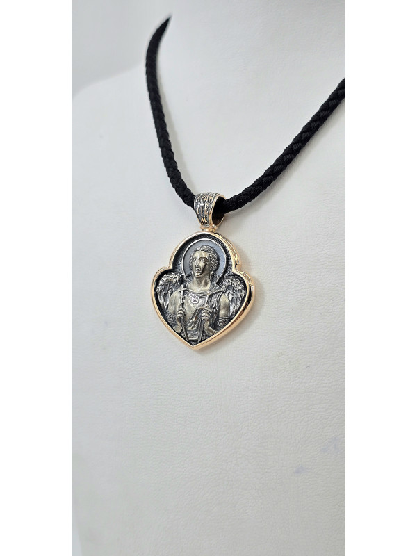 На обратной стороне подвески краткая молитва - обращение к " Архангелу Михаилу " о спасении и помощи в праведных делах.