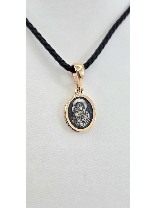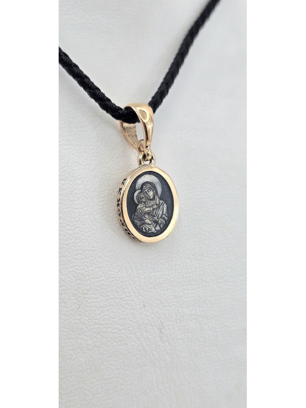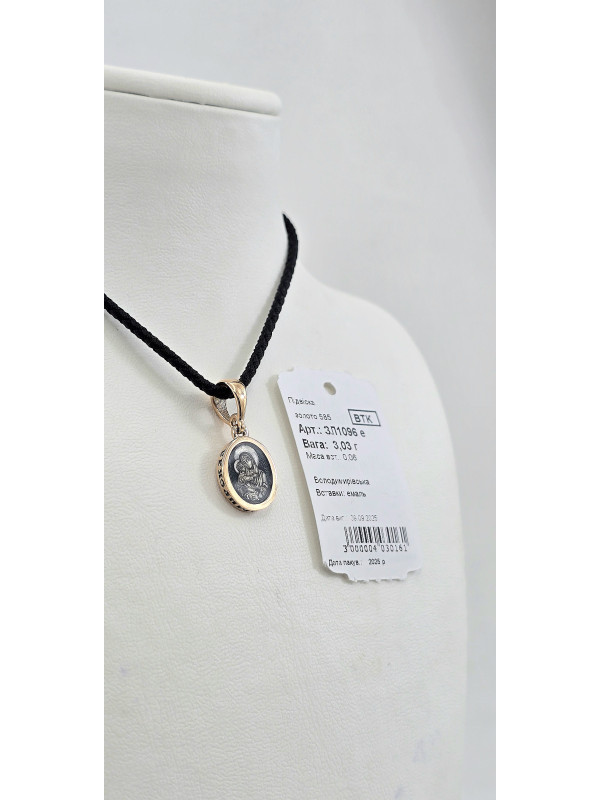 Ладанка красное золото 585° с элементами чернения и Эмалью " Владимирская " .