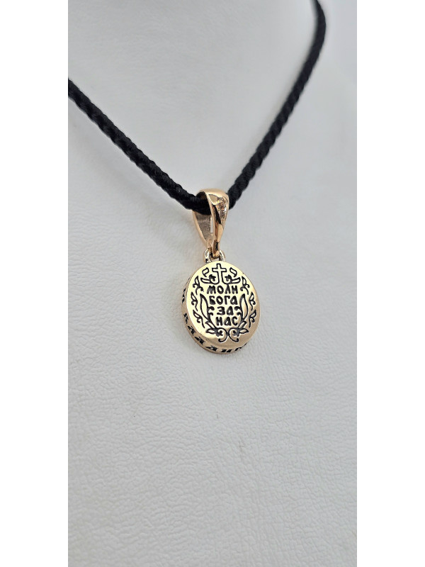 На обратной стороне подвески краткая молитва - обращение к " Божьей Матери " о спасении и помощи в праведных делах.